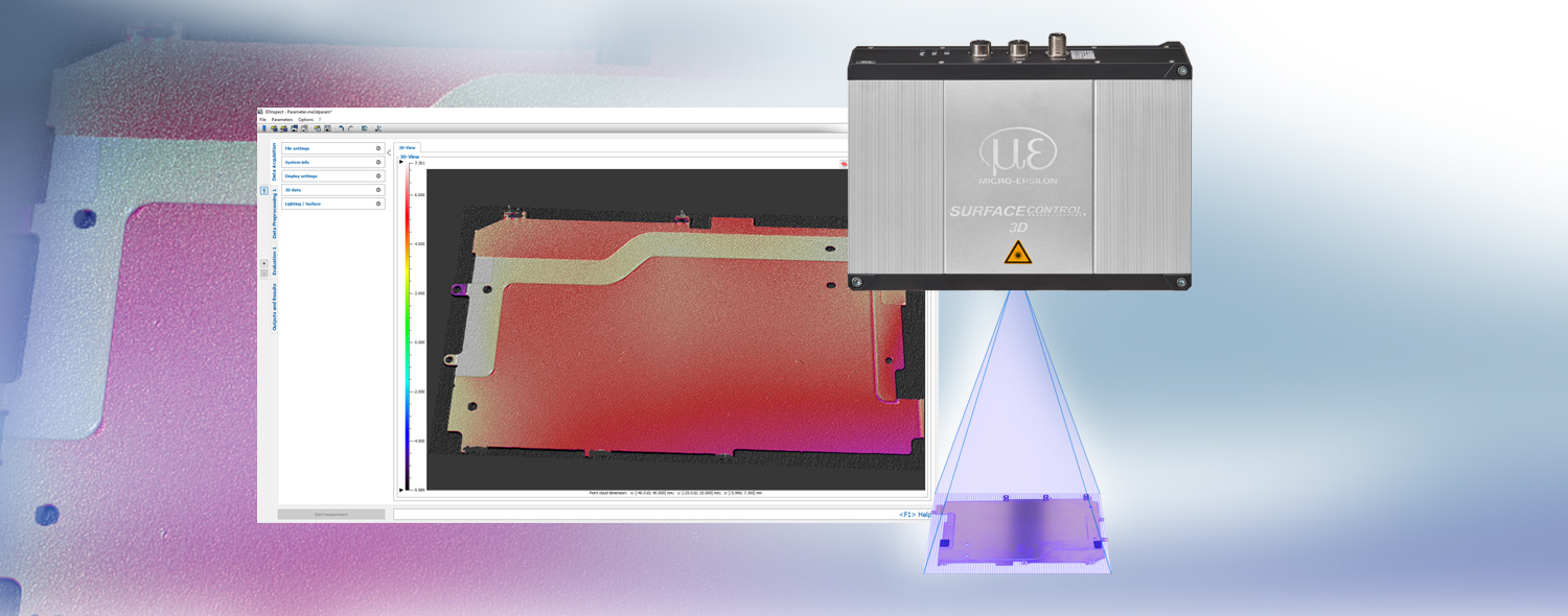 With its small measurement area of 30 x 18,5 mm, the surfaceCONTROL 32x0-30 detects even the finest 3D and surface structures with utmost precision and reliability. Its high z-axis resolution and the precise repeatability enable high precision measurements. In addition, tiny objects with a working distance of 130 mm can be detected while the XY resolution from 12 µm ensures even more accurate detection.