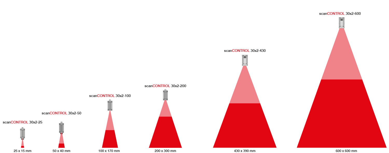 The scanCONTROL 30x2 laser scanners are now also available with a large measuring field of 430 x 390 mm or 600 x 600 mm. This allows large measuring objects to be detected with high accuracy.