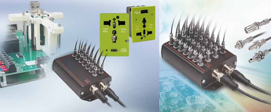 The colorCONTROL MFA series of multi-point colour detection systems is available in either 7, 14, 21 or 28 channel configurations (each with a uniform installation size) to monitor up to 28 LED test objects simultaneously. The MFA-14 offers high data processing/sampling speeds (up to 80 Hz), high repeatability (xy < ± 0.000025) and a wide dynamic range (1 to 50,000 lux).
