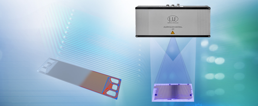 The surfaceCONTROL 3xx0-240 is suitable for a wide range of flatness measurement, coplanarity measurement and surface defect detection applications, including flatness inspection of circuit boards; planarity inspection of unpopulated PCB substrates; completeness check of electronic components on fitted PCBs; 3D measurement of high precision mechanical parts; width, tilt angle and position measurement of rivets; detection and evaluation of breaks on clutch discs; 3D text recognition of embossments that cannot be solved using 2D image processing due to lack of contrast; inspection of height and thickness of adhesive beading on smartphone shells; and determination of shape deviation defects on injection moulded parts.