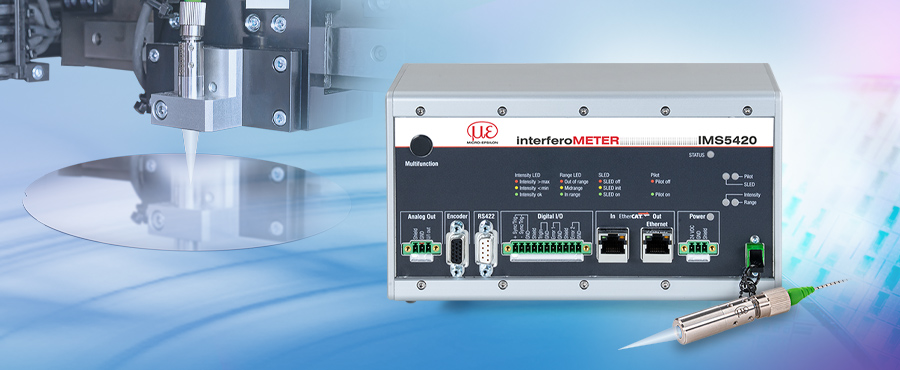 In semiconductor production, highest precision is essential. An important process step is the lapping of the blanks, which are thereby brought to a uniform thickness. In order to continuously control the thickness, the interferoMETER IMS5420 series white light interferometers were developed.